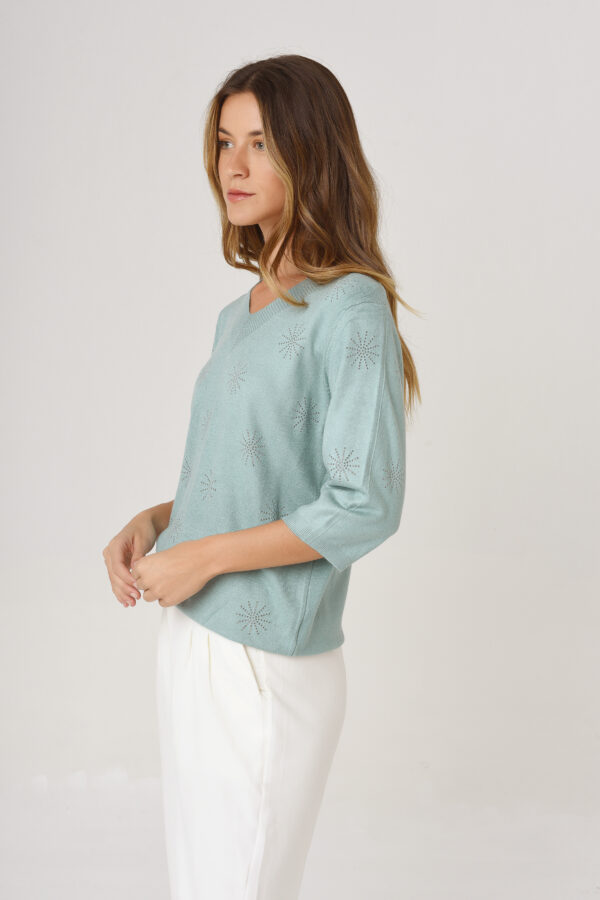 $18.500,00SWEATER CUELLO V MANGA AL CODO CON STRASS